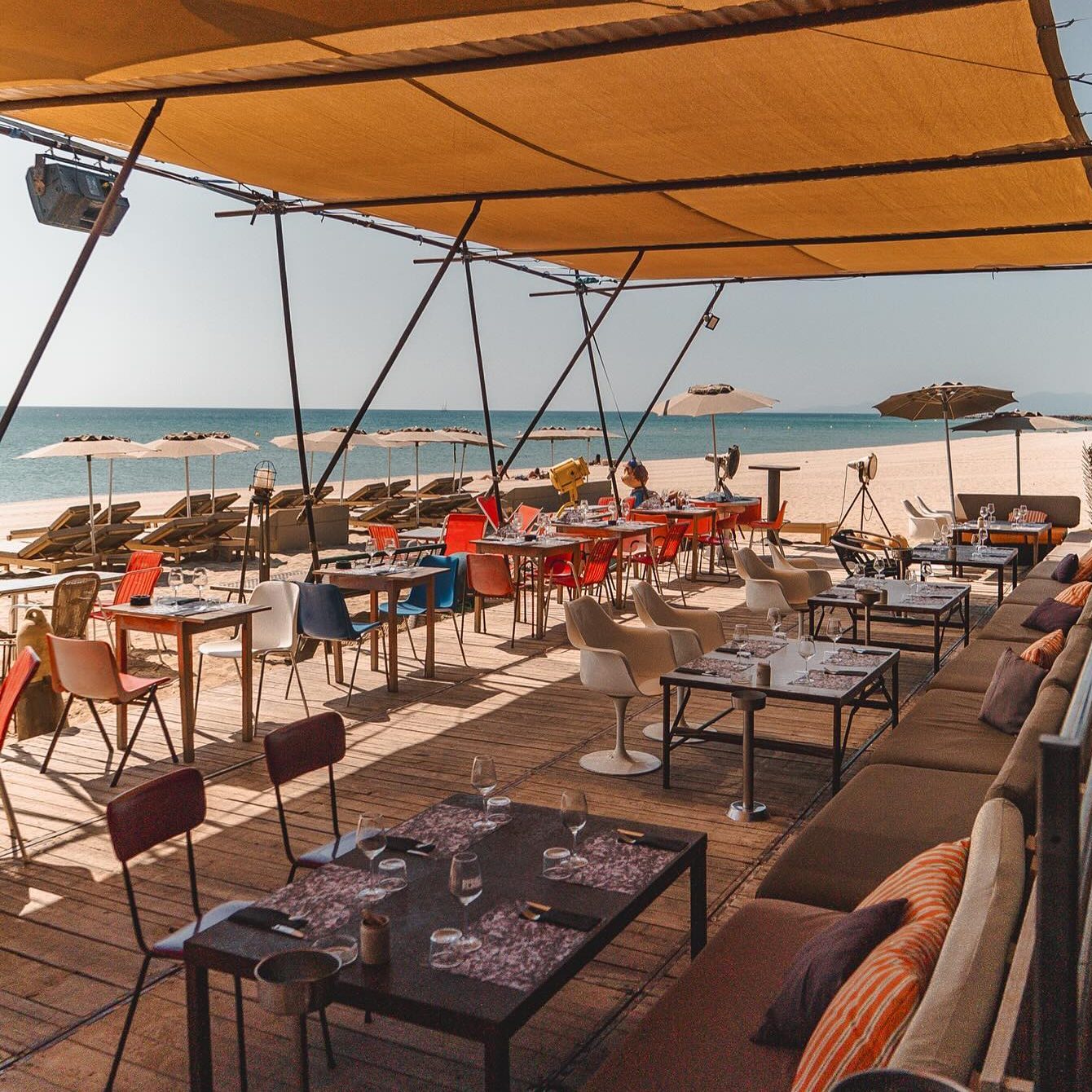 Eine grosse Markise und ein alter Baum bieten auch bei starker Sonne angenehmen Schatten. Der Blick über das Wasser auf die Berggipfel der Pyrenäen ist einzigartig. Der markante Canigou (2785m) hat oft bis in den Sommer hinein verschneite Hänge. Strand, von der Terrasse 30m von der Haustür 15m zum Mittelmehr 900m.