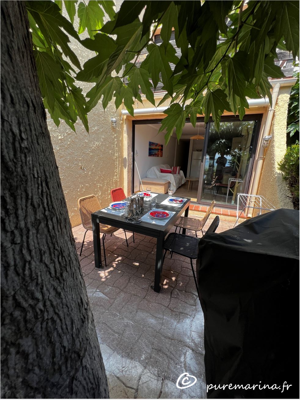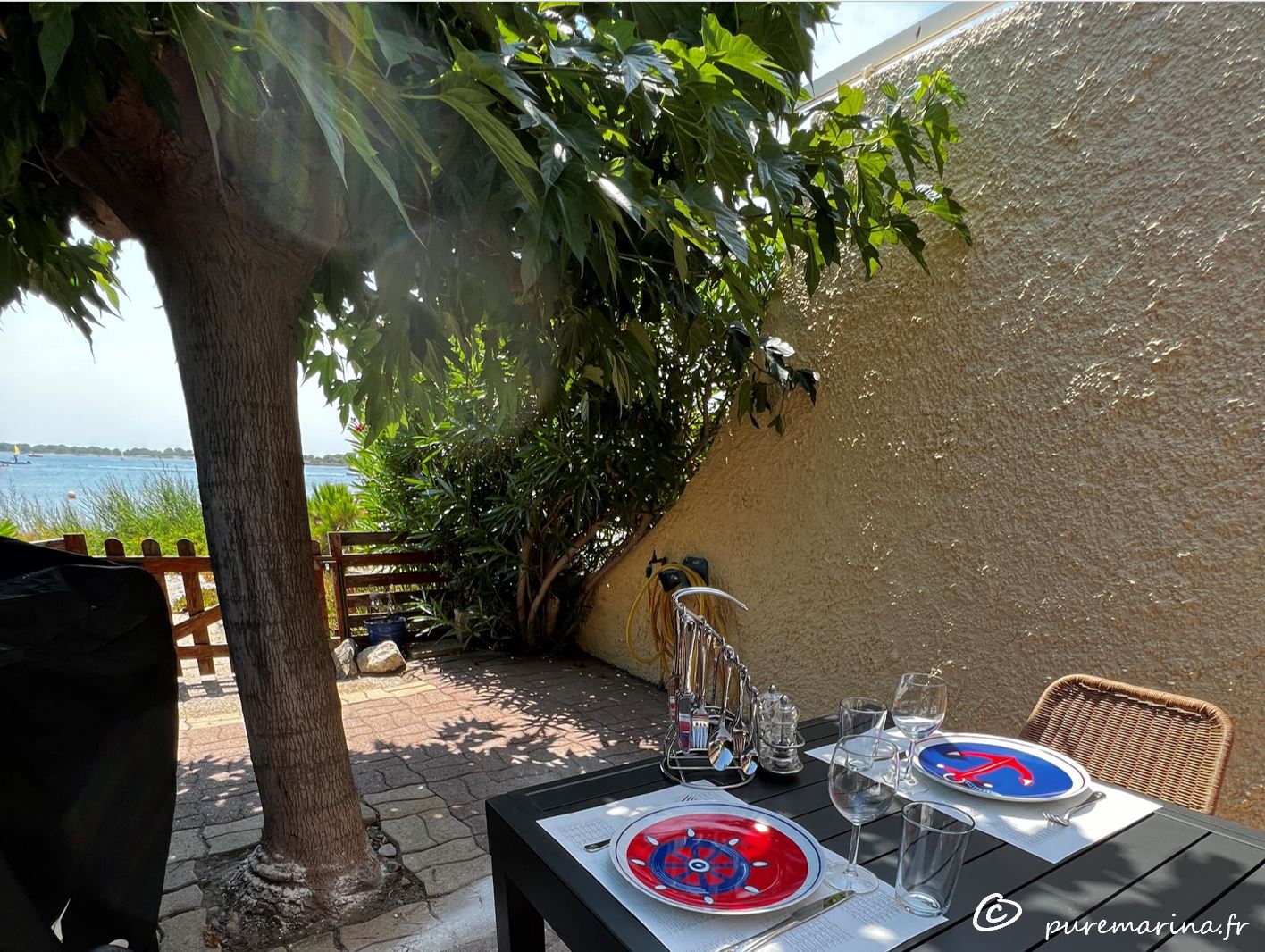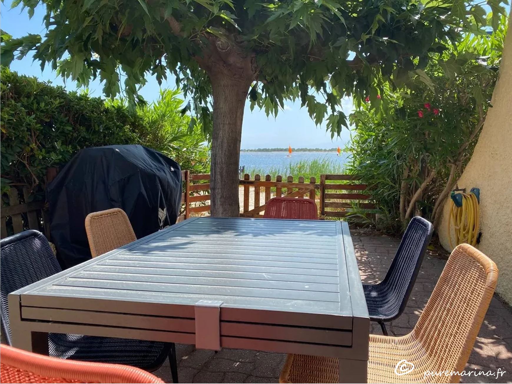 Wir kommen seit 2003 hier nach Port Leucate und geniessen die Zeit hier mit dem Blick über das Wasser und auf die Pyrenäen. Mit dem Gedanken nur wohlfühlen, haben wir unsere Ferienhaus nach dem Motto «Pure Marina» neugestaltet. Mit klaren Linien, hell, sauber mit einer Terrasse direkt am Wasser und einem Baum mit natürlichen Schatten kann man es sich gut gehen lassen.