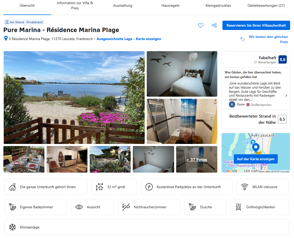 Reservierungen erfolgen über Booking.com. Für Aufenthalte von einer Woche und mehr können Sie uns unter pure.marina@web.de kontaktieren, um einen Vorzugspreis zu erhalten.